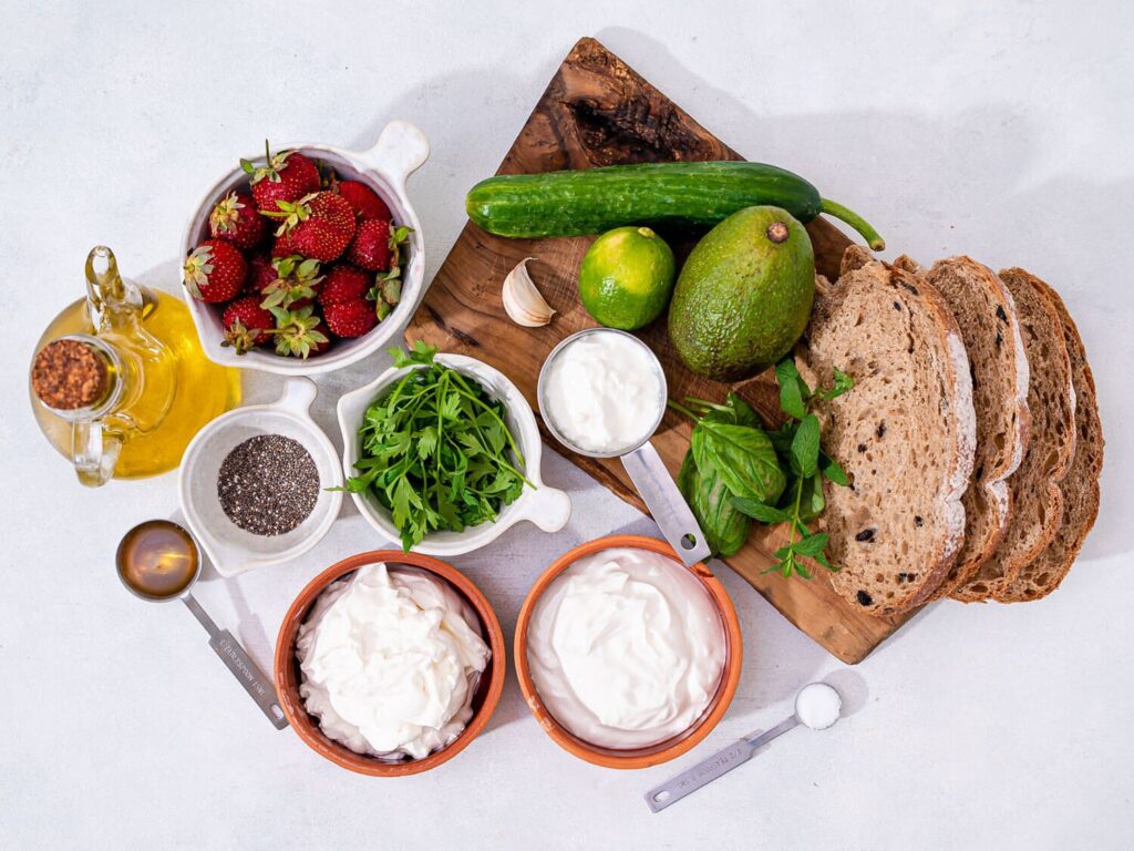 Serve the Salty and Savory spread and the Avocado Lime Dip with crispy sourdough toasts, bruschetta crisps, or salty crackers. Serve the Sweet Treat spread with Graham Crackers, Sourdough bread and fruit.