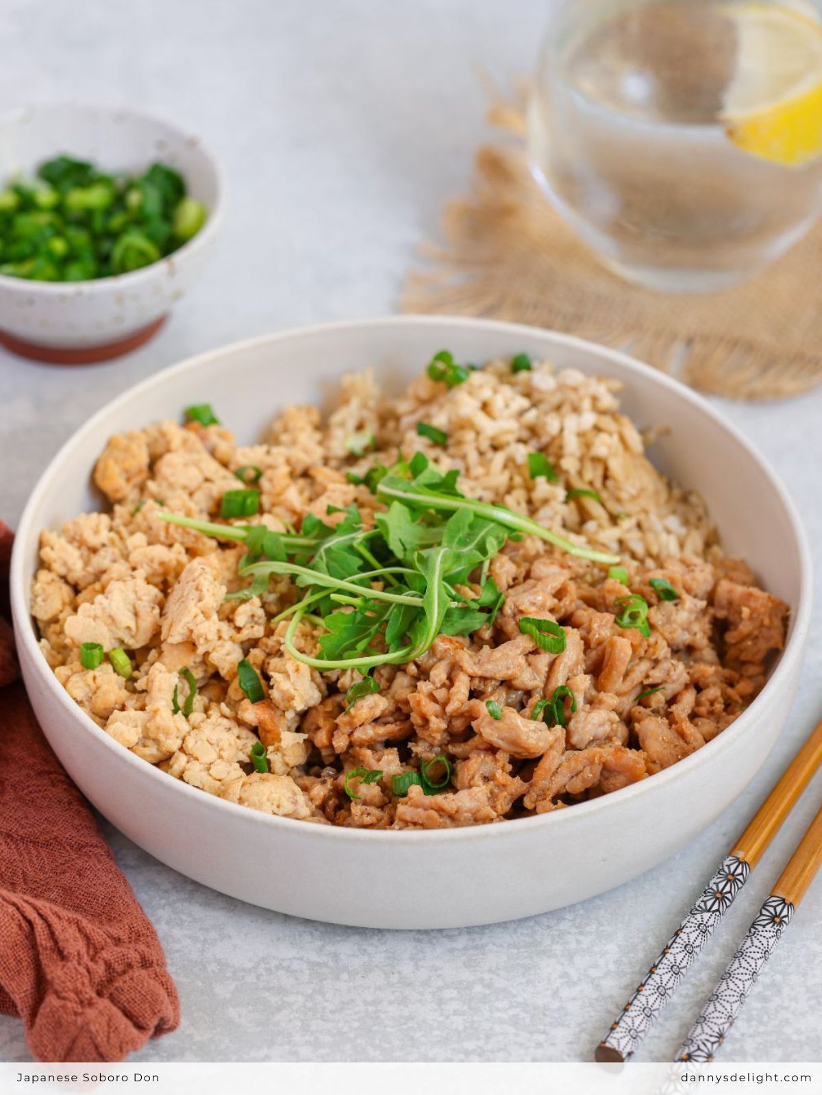 The fun part! Here are some delicious ways to serve and style your Soboro Don to make it a full meal or a fancy-looking feast.