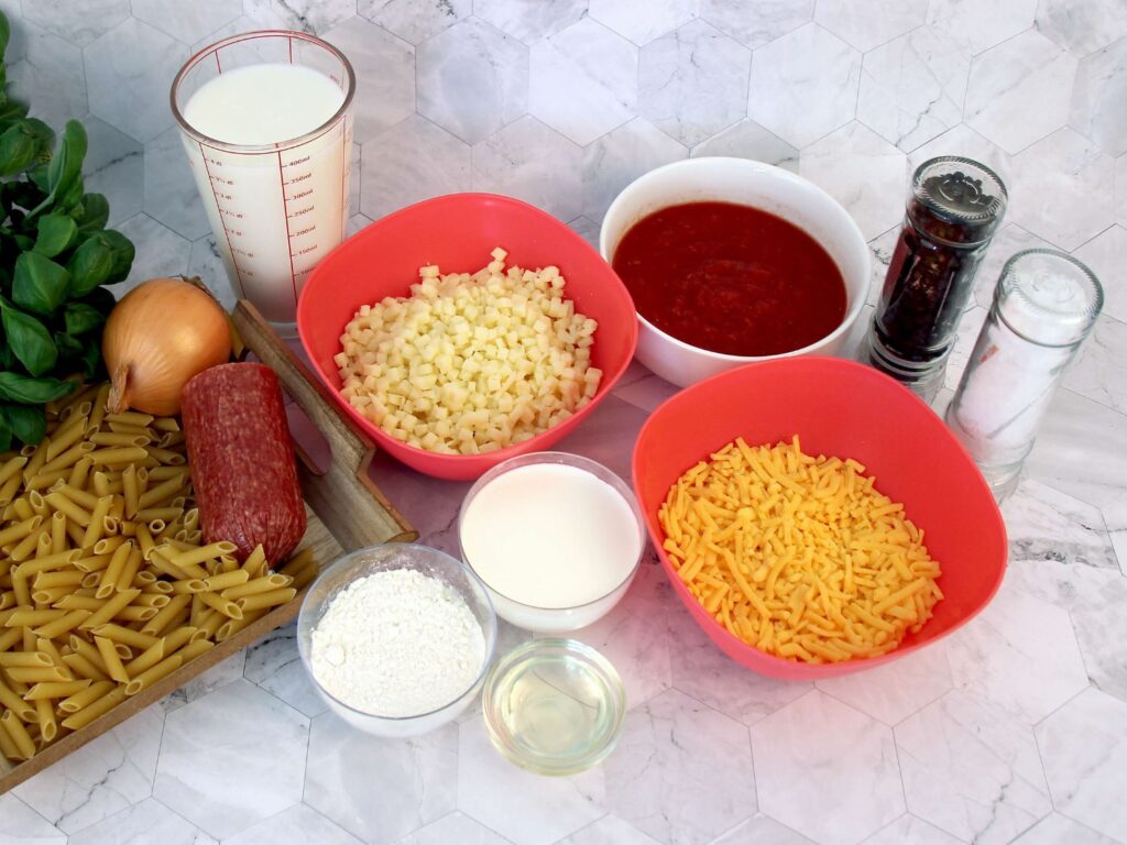 This is the perfect dinner when you just can't decide. This dish is just like eating creamy macaroni and cheese and pepperoni pizza at the same time! Problem solved! Comfort food at its best.