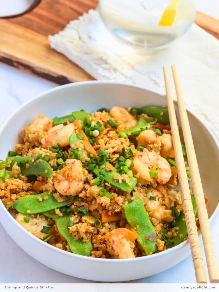 shrimp and quinoa stir fry, easy shrimp stir fry, healthy quinoa recipes, 30 minute meals, high protein dinner ideas, weeknight dinner recipes, healthy shrimp recipes, gluten free stir fry, meal prep ideas, quick and easy recipes, quinoa bowl recipe, Asian inspired quinoa, healthy takeout alternative, one pan quinoa recipe, protein packed meals, family friendly dinners, low calorie dinner, nutritious stir fry, tamari sauce recipe, simple shrimp dinner