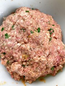 Add fresh chopped herbs to the bowl and combine all ingredients with clean hands until well blended. Do not   overwork.