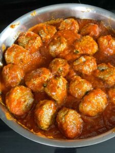 Note: The meatballs will reach a safe temperature of 165°F (due to the pork sausage) while they rest and are then warmed in the marina sauce. -