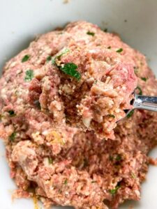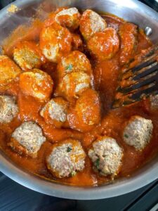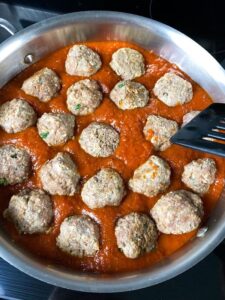 Note: The meatballs will reach a safe temperature of 165°F (due to the pork sausage) while they rest and are then warmed in the marina sauce. -