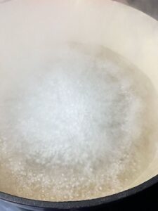 While the meatballs are baking, prepare spaghetti according to package directions. Drain and rinse to prevent sticking and set aside.