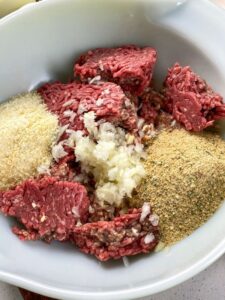 Add fresh chopped herbs to the bowl and combine all ingredients with clean hands until well blended. Do not   overwork.