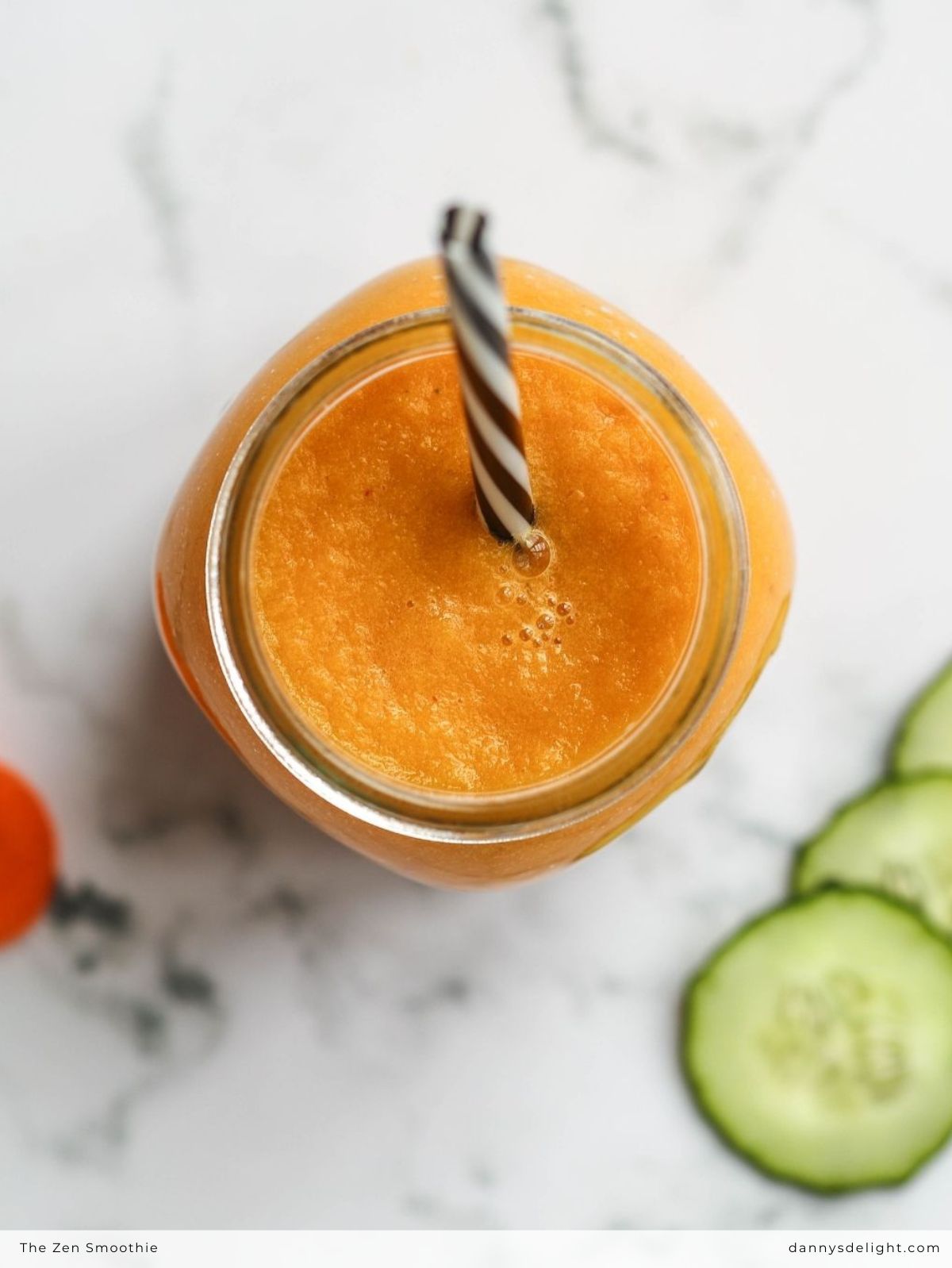 Need a smoothie that helps you chill out? 🙌 My Zen smoothie has cucumber, green grapes, carrots, lemon, water, and ice. Vegan, dairy free, and gluten free – I sip this when I want something clean, green, and totally refreshing. Ahhh... 😊🥤